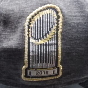 Celebrate the historic 2016 World Series win with this officially licensed Chicago Cubs "Champions" baseball cap. Features detailed embroidery on the front, a commemorative World Series trophy patch on the side, and the MLB logo on the back. The cap is gray with gold trim, has an adjustable strap for a comfortable fit, and is perfect for collectors and fans alike.