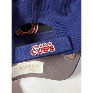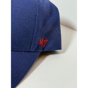 Keywords: 47 Brand, Chicago Cubs, baseball cap, MLB, adjustable hat, fitted cap, sports hat, team apparel, Cubs hat, fan gear, game day, embroidered logo, navy blue, red, one size