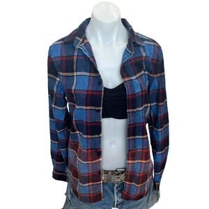 Chicago Cubs Baseball Plaid Flannel Shirt SMALL Oversized Shacket Unique Upcycle