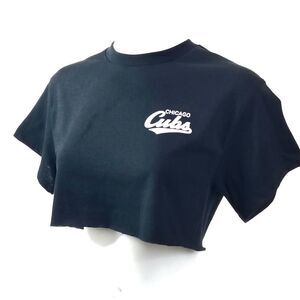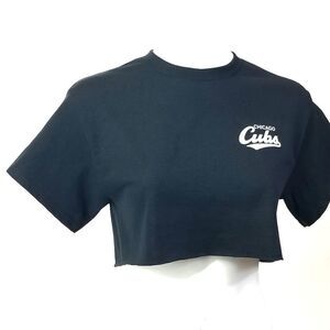 Chicago Cubs Double Script Retro Logo MLB "Cropped" Crop Top Baseball Jersey Tee. Size: S, M, L and XL