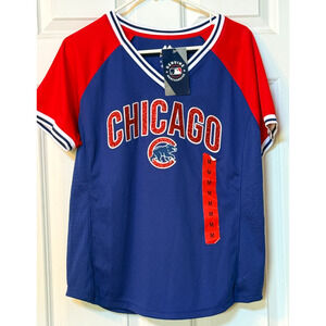 Chicago Cubs Jersey NWT Majestic V Neck Pullover Womens Medium MLB Glitter Print is NEW with Tags. The design is in a Glitter Print.