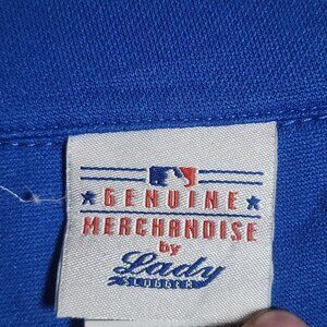 Chicago Cubs Jersey Womens XL Blue White MLB Baseball Button Front Script Raglan