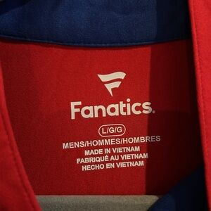 Fanatics Chicago Cubs Men’s Wuarter Zip Pullover. Blue/red. Zipper spells Cubs when zipped up. Cubs logo on chest. Polyester/elastane. Lightweight and so soft!! Very good condition with no signs of wear. Size Large