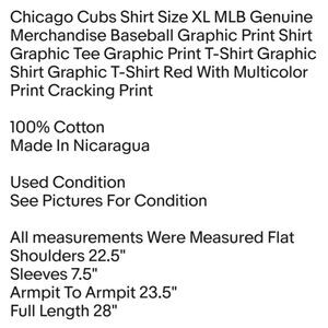 Chicago Cubs Shirt Size XL MLB Genuine Merchandise Baseball Graphic Print Shirt Graphic Tee Graphic Print T-Shirt Graphic Shirt Graphic T-Shirt Red With Multicolor Print Cracking Print
