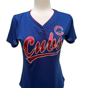 Chicago Cubs Shirt WMN Sm TX3 Cool Blue Red Metallic Snap Collar Short Slv MLB