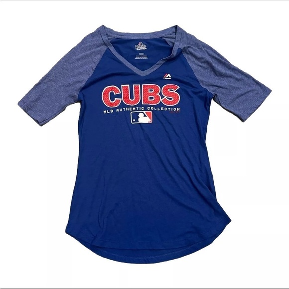 Chicago Cubs Shirt Women's Medium Blue Short Sleeve Tee Majestic MLB Ladies