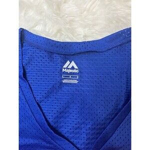 Made by Majestic, this top features breathable mesh fabric on the shoulders and sleeves for a sporty look and extra comfort. The bold red and blue color-block design is accented with metallic silver “Cubs” lettering across the front—perfect for catching eyes at the ballpark or while watching from home.