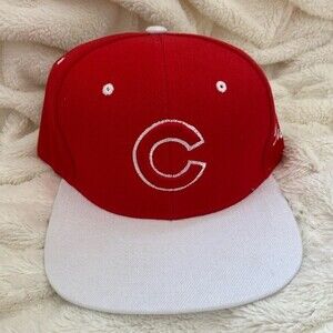 Red and white Chicago Cubs hat