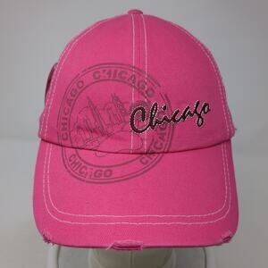 Chicago Strapback Baseball Cap Pink One Size Adjustable Embroidered Distressed