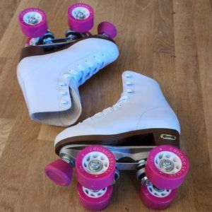 CHICAGO Classic Roller Skates - Premium white quad roller/rink skates with pink wheels. Large 5/8 inch front brake.