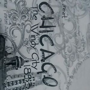 White shirt with gold lettering and buildings that says Chicago the Virgina does indie city 1833 with rhinestones