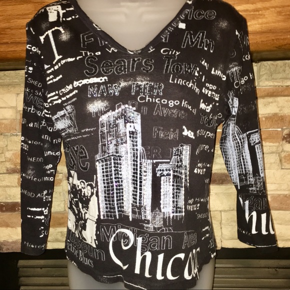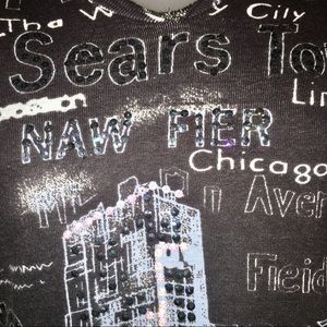 3/4 length sleeves, different Chicago location “highlights”, sequin and beading details; LIKE NEW, worn maybe once