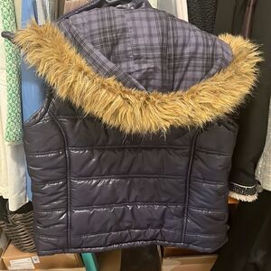 Chicago Bears puffy vest with plaid lining and fur trim collar