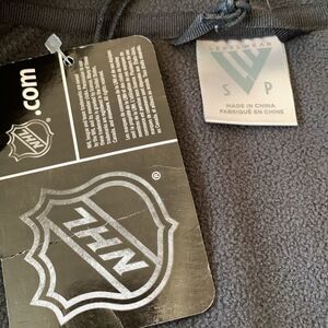 NWT NHL Chicago Blackhawks black fleece zip up with three zipper pockets. Blackhawks logo on left side of chest. Three zipper pockets one on chest and two on the side