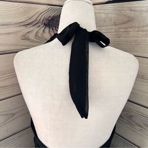 Chicas Vintage Y2K 90s Black Halter V Neck Flowy Dress