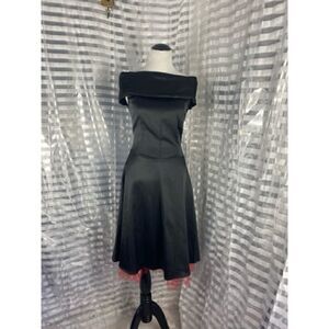 Off the shoulder zip up back satin red tule skater dress no size tag see measurement for fitting