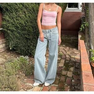 Back Pocket Embellishments: Adorned with charming, delicate bow embroidery, these jeans add a trendy, feminine flair to your everyday look.