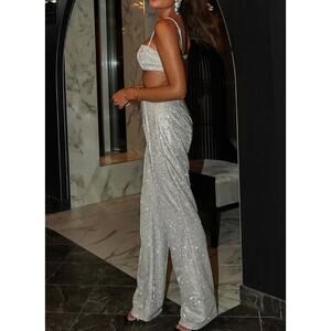 Two Piece Set Silver Spaghetti Strap Tube Top and Pants