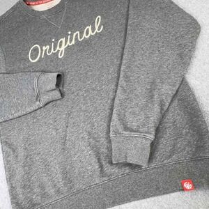 The product is a size large Chick Fil A sweatshirt featuring a chicken chainstitch design. This pullover crewneck sweatshirt is made from a blend of polyester and cotton, with a knit fabric type. It is machine washable and accented with embroidered logos, making it suitable for all seasons and various activities like gym training and walking. The gray color and solid pattern, along with the classic and funny theme, make it a versatile and stylish addition to anyone's wardrobe.