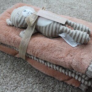 Chick Pea Bear Plush Baby Blanket Set Sherpa Fleece Tan Orange Soft Lovey NWT