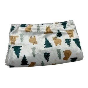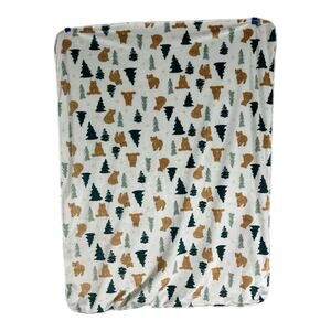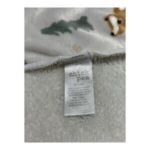 Baby blanket from Chick Pea with a bear and trees print. Backside is Sherpa fabric. Preowned in good condition with normal wear stains or holes. Shows some normal wear from wash and use.