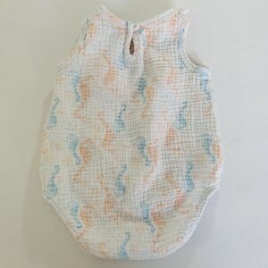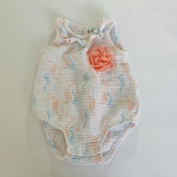 Chick Pea Bubble Romper Baby Girl 3-6 Months Seahorse White Muslin Gauze Cotton