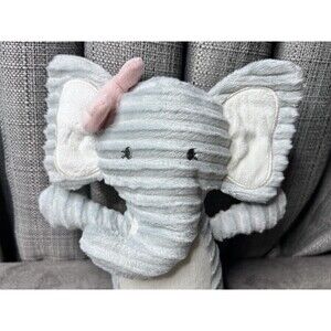 Chick Pea Plush Elephant Lovey Gray White Ears Tummy Textured Pink Bow 11 inch