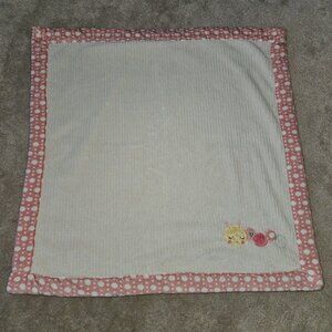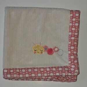Chick Pea Ribbed Caterpillar Fleece Baby Blanket Pink White Polka Dot Trim 30x30