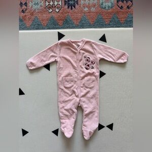 Adorable pink kids one piece featuring a charming floral design. Perfect for keeping your little one cozy and stylish.