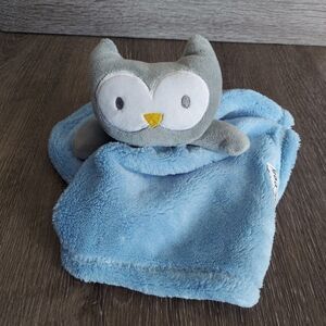 Chick Pea Blue Fleece Gray Owl Face Baby Security Blanket 14" Lovey Soft Mini