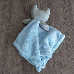 Soft blue plush security blanket with a cute animal design. Perfect for comfort and cuddles.