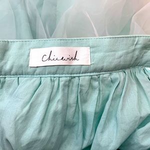 This unique feminine skirt is a lovely shade of aqua. There is cotton under skirt and a sheer over skirt. There is no size tag or content tag. See photos for approximate measurements. Great for wedding season.
