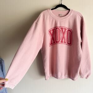 Chicka-D Pink + Red Ribbed XOXO Crewneck Sweatshirt - Medium