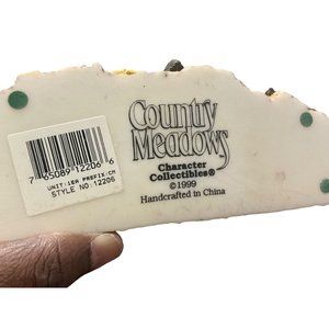 COUNTY MEADOW CHARACTER COLLECTIBLES 1999 , HANDCRSFTED IN CHINA , BROWN RED AND GREEN COLOR , SIXE IS 4X6N, OPERATED IN BATTERY AA, GOOD CONDITION