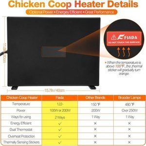 Chicken Coop Heaters,100/200W Adjustable Wattage ULTested RadiantHeat Flat Panel