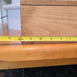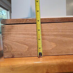 Really beautiful box in excellent condition. Measures 12" wide x 4" tall x 5 1/4" from front to back.