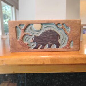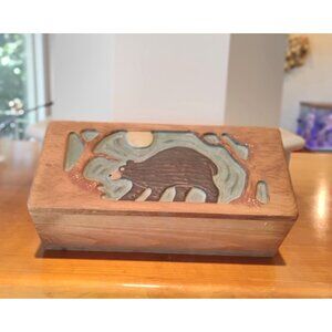 Chicken Creek Folk Art Large Carved Wood Box Bear in the Moonlight12" Wide
