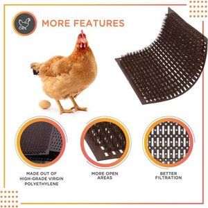 🧿SMART DESIGN - Made with holes in the center of each cluster of blades and slotted openings between the clusters to create a more open area for nesting; the nest box liners for chicken provide better filtration and are moisture resistant. Best add ons for chicken feeder, chicken water feeder and chicken toys. Perfect for Pine shavings!