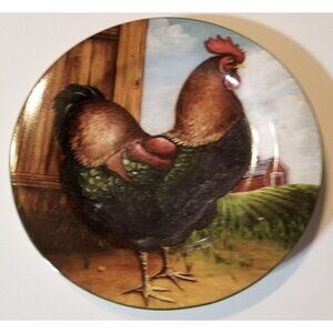 Chicken Rooster 8" Plates Vtg Sakura Oneida ON THE FARM Set of 4 David Carter Br