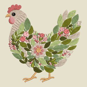 Chicken Sweatshirt Embroidered Floral Hen Adult Unisex Crewneck Sweatshirt Farm