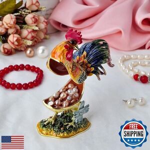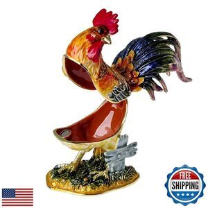 Crafted from high-quality zinc alloy and gold-plated, this rooster trinket box is hand-painted and adorned with vibrant crystals, ensuring a stunning and durable finish that catches the eye.
