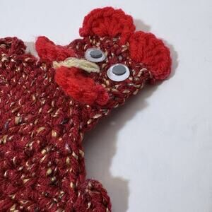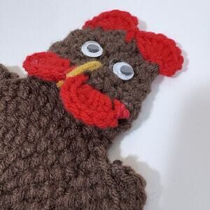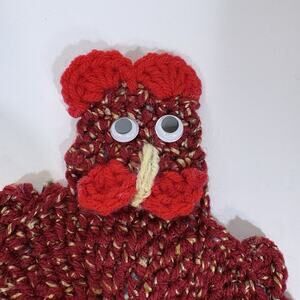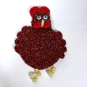 Chicken Turkey Hot Pad Pot Holder Handmade Crochet Vintage Country Red Brown