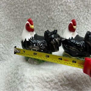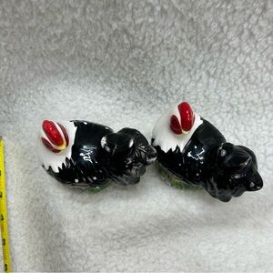 Chicken salt & pepper shaker set American Atelier black, white & red vintage 4"