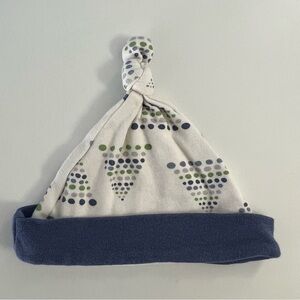 Chickpea knotted baby hat - blue, green, gray dots