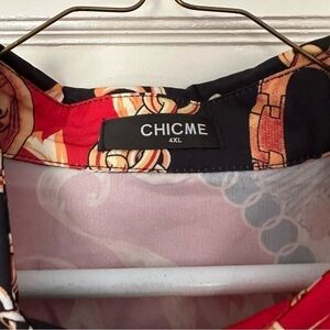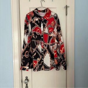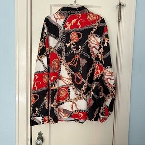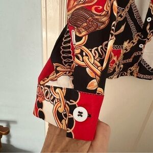 Chicme Equestrian Blouse Collared Button Up Top Chain Black Red & Gold Size 4X