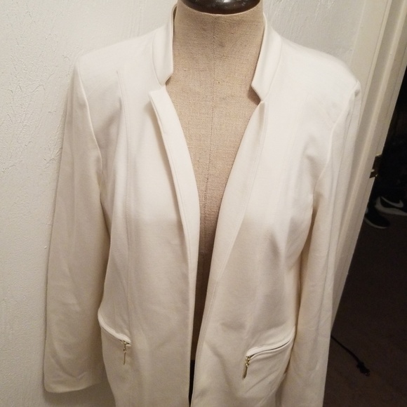 Creme With Gold Zippers . It is actually a size 1!!! Beautiful quality jacket!! Can be worn with a skirt, Jean's , dress etc. I love it myself!!!