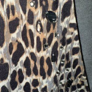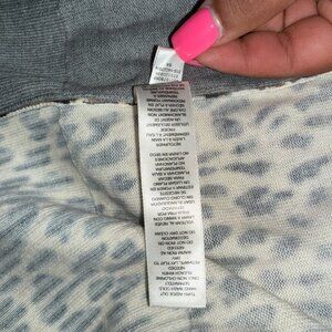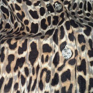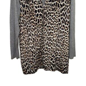 Chico Embellished Animal Print Gray Peyton Button Long Line Cardigan Sweater Size 3 XL/16,, Ribbed at the cuff and Hem, Gray and animal print, Embellishments starting from the should all the to the chest and the buttons are are clear round Rhinestone like. Super cute, Stretchy, great pre owned condition.
