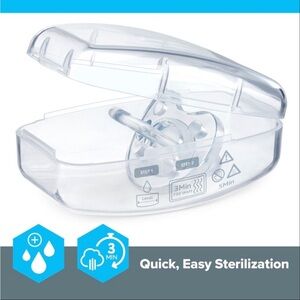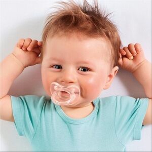 Finally, a pacifier that soothes babies and parents too! The PhysioForma Soft Silicone Orthodontic Pacifier is a 100% silicone one-piece pacifier that isn't just for pacifying, but is also clinically developed for comfort, breathing and orthodontic benefits.An exclusive nipple design helps position baby’s tongue forward to maintain an open airway, which supports physiological breathing. Physiological breathing is especially important during sleep. It improves quality of sleep and reduces irritability - better for baby & you!The unique angle and lateral curve of the nipple evenly distribute tongue pressure across baby's palate. Tiny ridges and an inclined nipple shape guide proper tongue placement. Together, these important features support baby's growing palate and teeth.For baby’s comfort, the nipple is made from extra-soft silicone with a satin-textured finish to help keep the paci in baby’s mouth for uninterrupted soothing. Multiple ventilation holes promote air circulation and help reduce moisture buildup on baby’s soft, sensitive skin. Plus, there's an easy-to-grab handle for either baby or parent to hold.The PhysioForma exclusive nipple design was developed, tested, and approved in partnership with an advisory panel of leading neonatologists, pediatricians, and orthodontists. Reusable, sterilizing/carry case included.