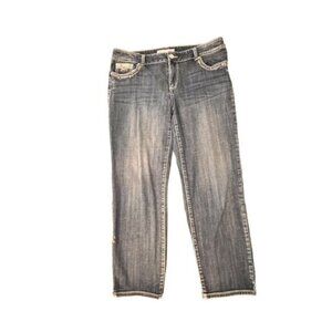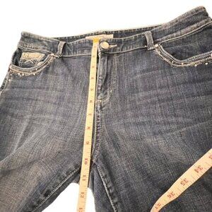 Great denim jeans from Chico's. Lots of glam and bling on the back pockets and a bit on the front pockets along with silver embroidery.