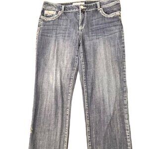 Chico Platinum Jeans Women Size 2 Blue Denim Dark Wash Straight W35 L26.5 BLING